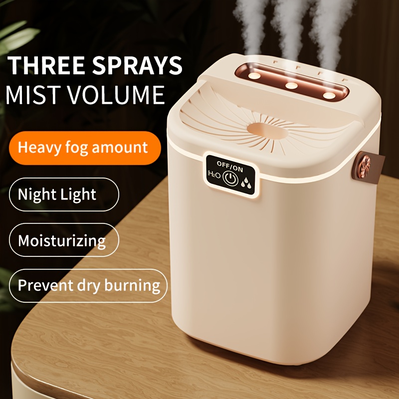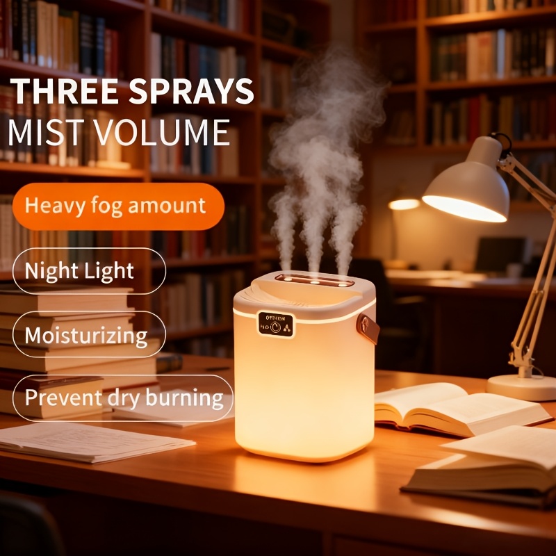 3-Nozzle Silent LED Night Light Humidifier with 3 Mist Levels & 67.63oz Large Water Tank - USB Powered, Quiet Operation, Ideal for Bedroom, Dorm, Home Decor - Modern Aesthetic, Auto Shut-Off, 36V/36V Operation, Suitable for All Room Types