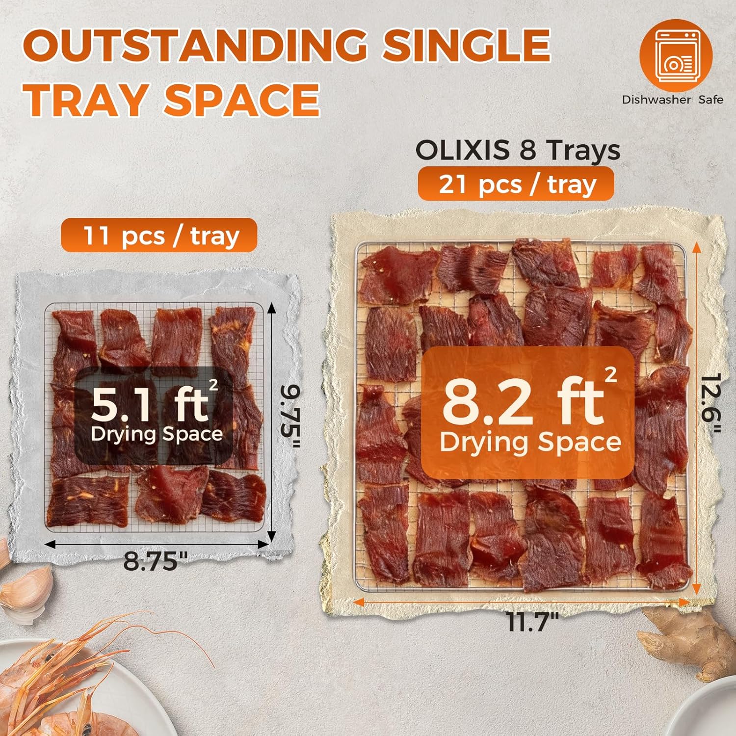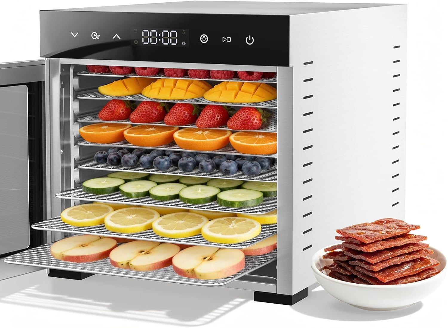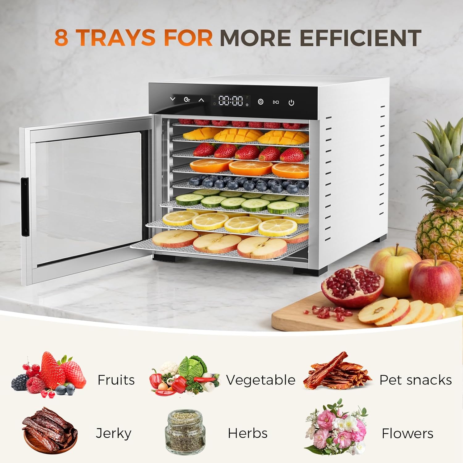 Food Dehydrator Machine, 500W Jerky Dehydrators with 8 Stainless Steel Large Trays, 185°F Temperature Control & 24H Timer Food Dryer for Fruit Meat Herb Dog Treats, Silver