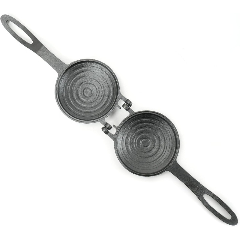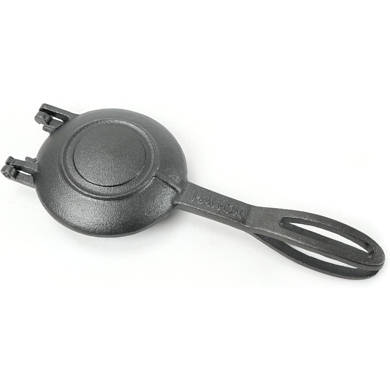Compact Round Cast Iron Grilled Sandwich & Pie Maker with Single-Side - Portable for Pancakes, Burgers, Pizza - Even Distribution, Cast Iron, Ideal for, Camping, Picnics (No detached