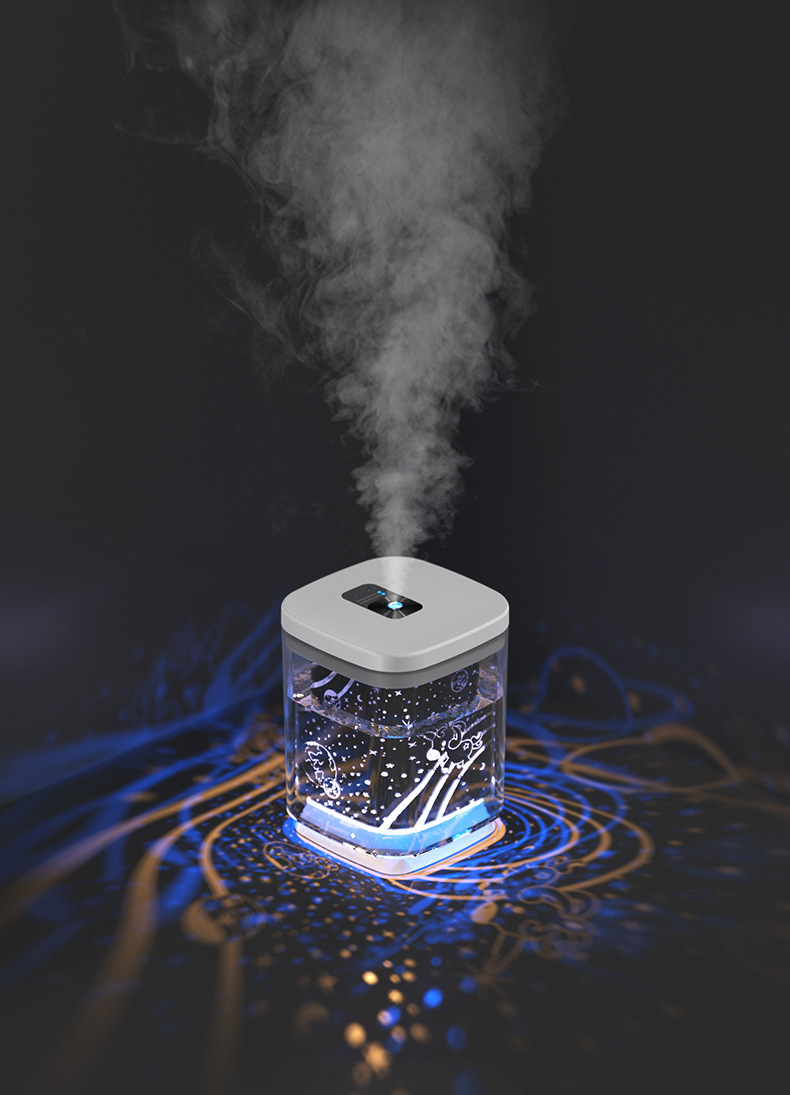 Romantic Starry Sky Projection Humidifier- Silent Operation, Large Capacity, Dual Power Source (USB/Battery), Colorful Mood Lighting, Portable Design, Perfect Gift for Home or Office, Bedroom Humidifier| Cylindrical Humidifier