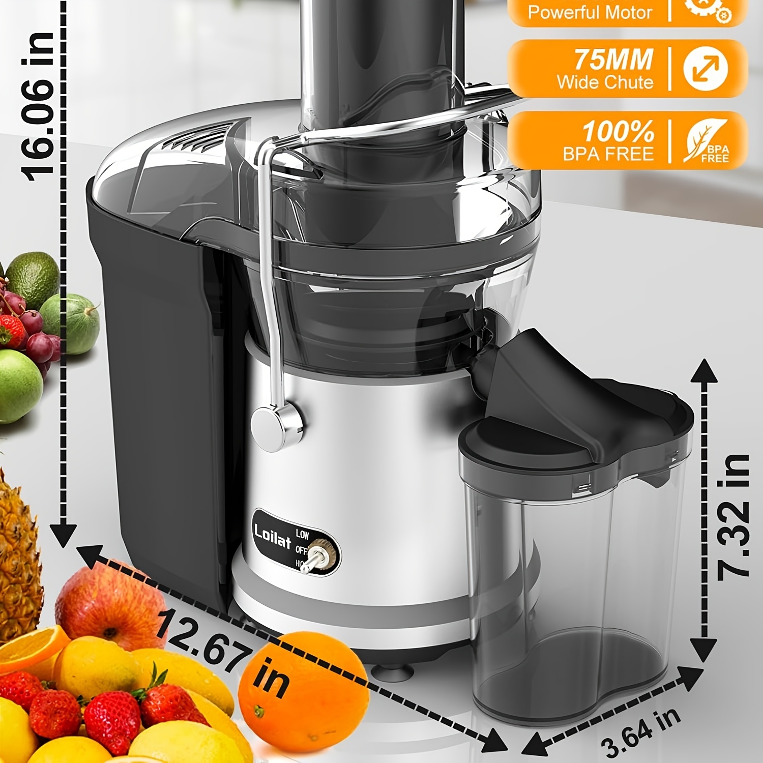 Christmas Gifts, Powerful Juicer, 1200W Juicer Machine With 3" Feed Chute For Whole Fruits And Vegs, Dual Speeds Centrifugal Juice Extractor Maker With Heavy Duty Full Copper Motor, High Juice Yield, High Volume, Easy To Clean, BPA-Free, Halloween