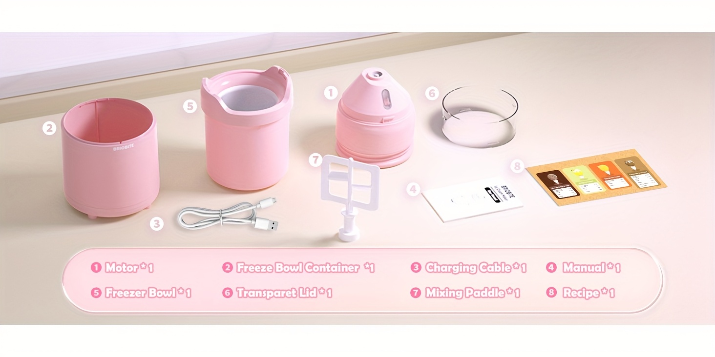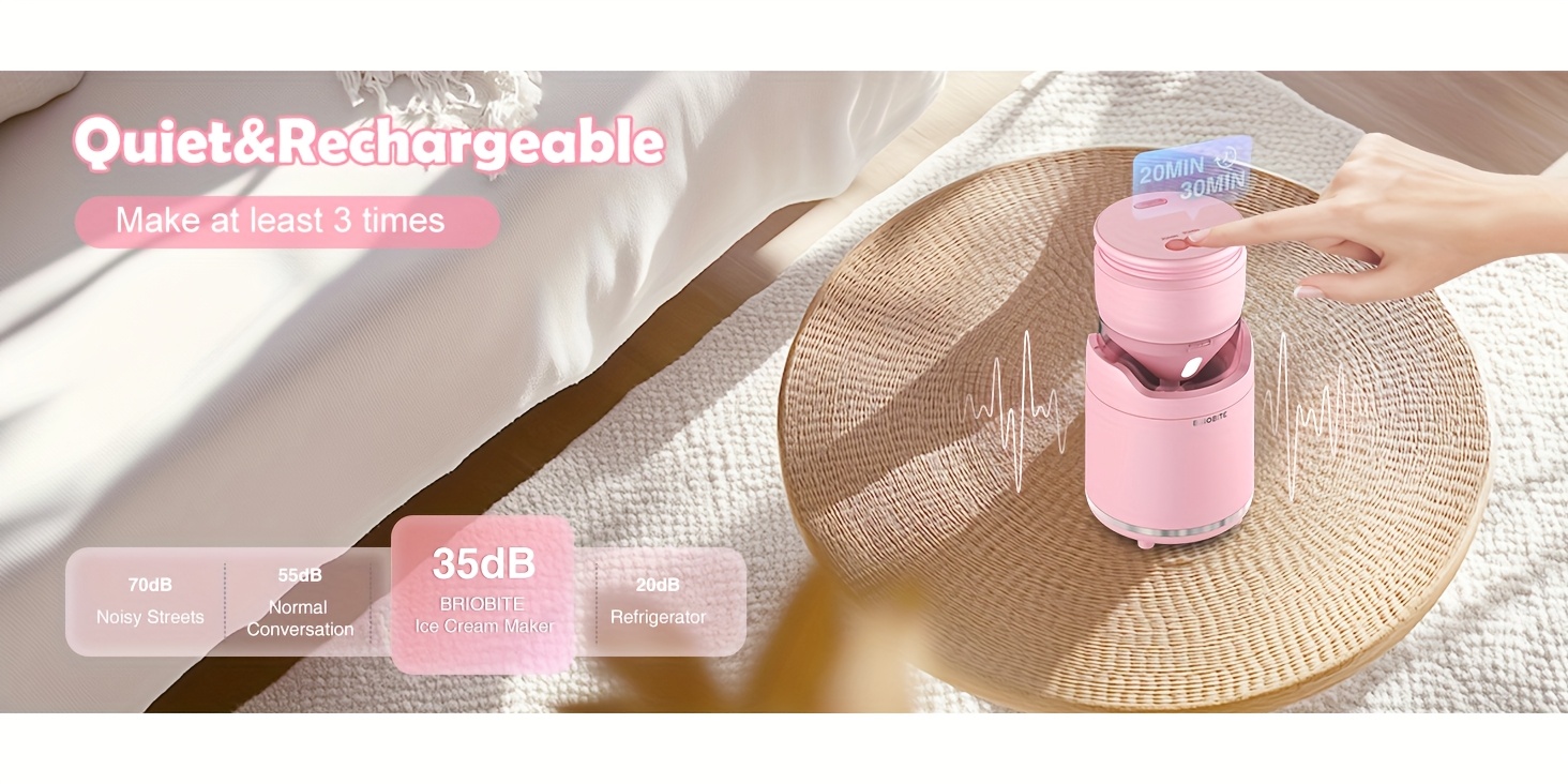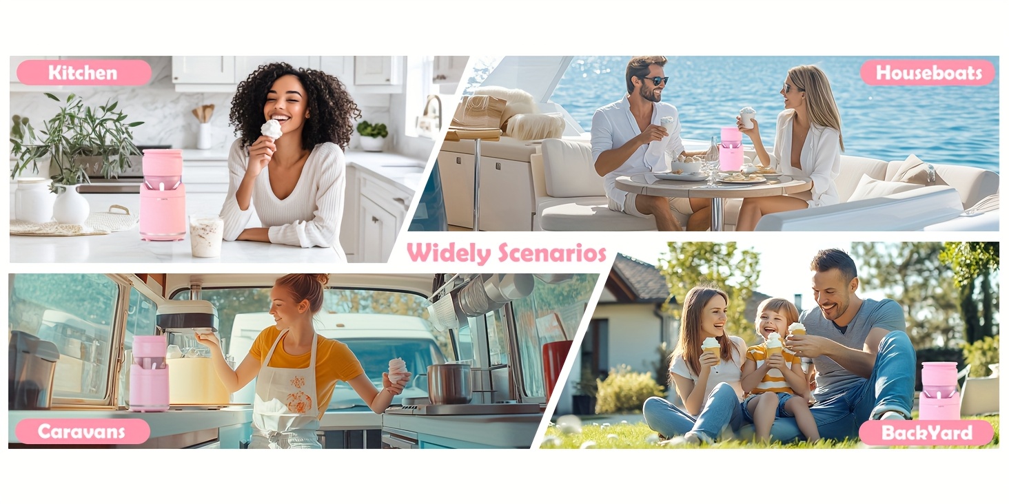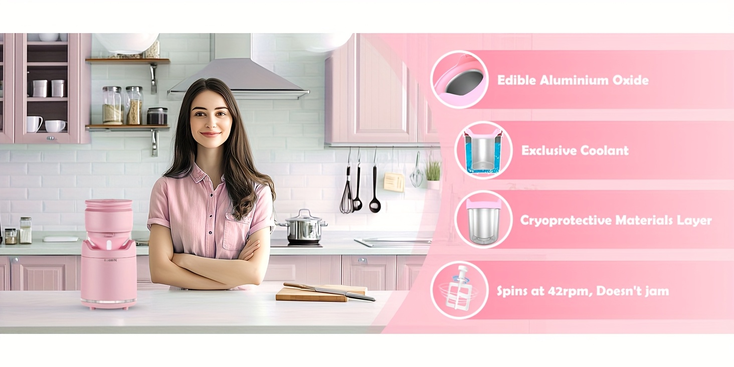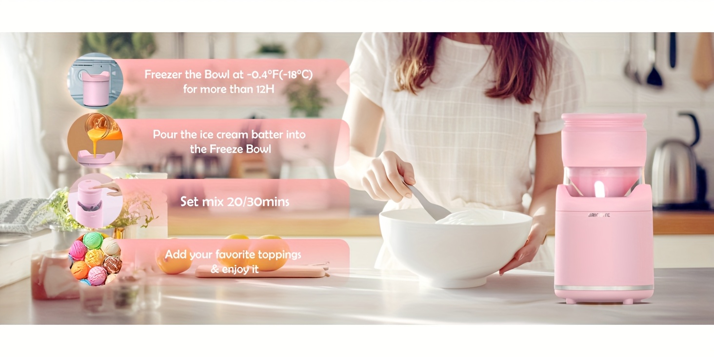 Ice Cream Maker - Rechargeable & Compact Electric Ice Cream Machine For Gelato, Milkshakes & Sorbet, Double-Insulated Bowl, Easy To Clean, Perfect For 1-2 Servings, Pink