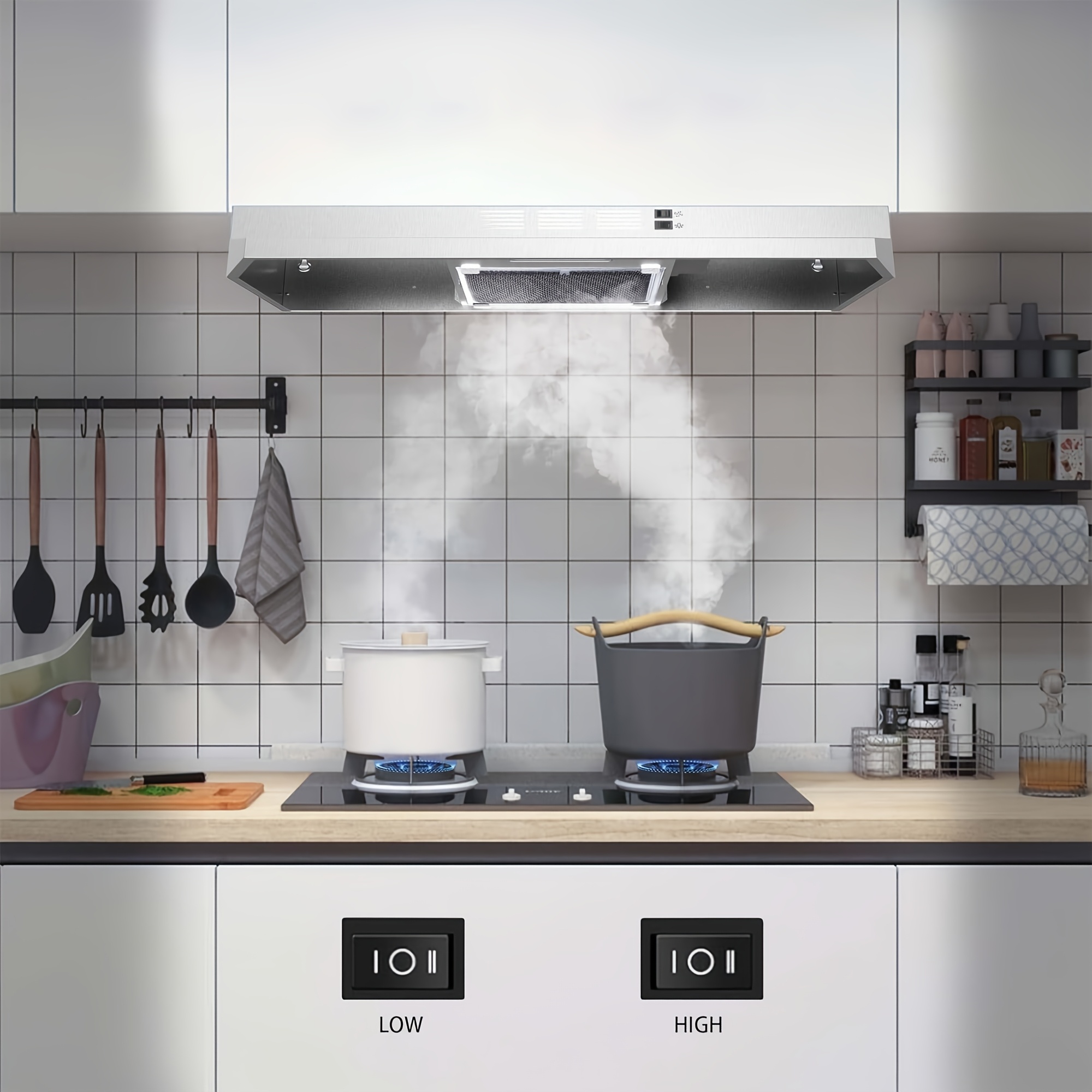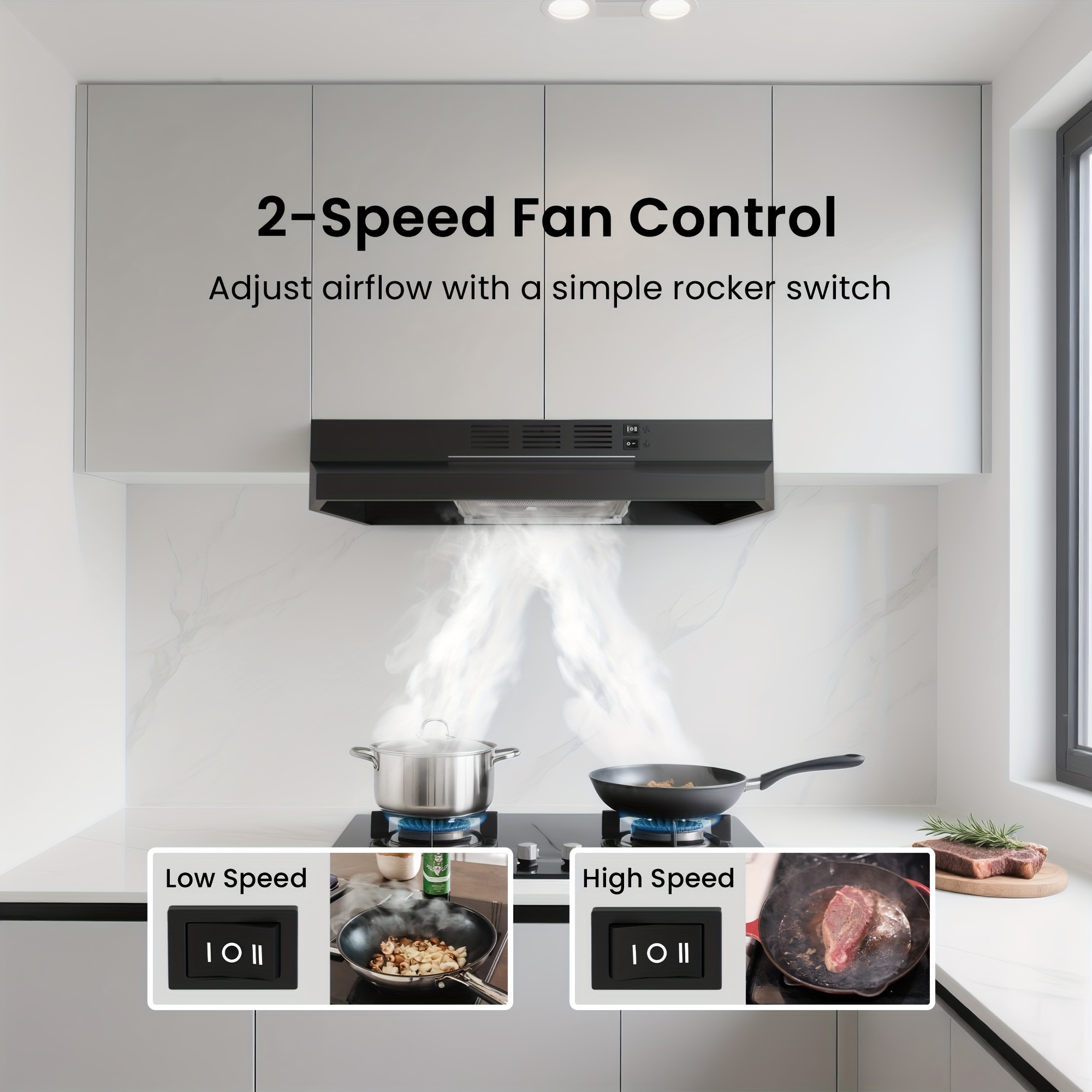 30-Inch Kitchen Range Hood for Under Cabinets, Convertible Between Ducted And Ductless, Made of Stainless Steel with LED Lights, Featuring a Two-Speed Exhaust Fan
