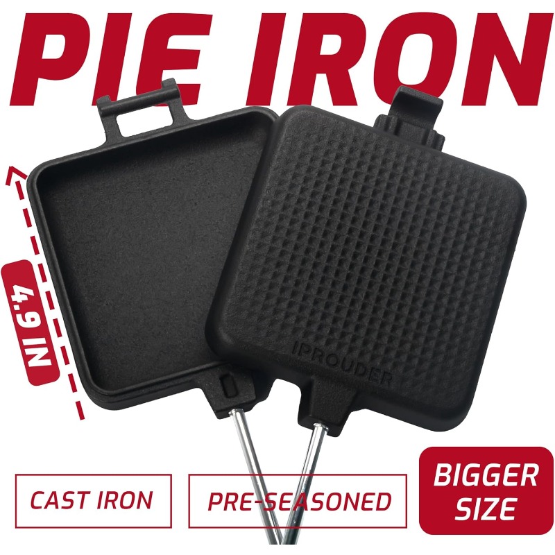 4pcs Campfire Pie Iron & Sandwich Maker - Large Cast Iron Portable Outdoor Cookstove Suitable for Camping, Thickened Handle & Storage Bag Included - Campfire Cooking Equipment for Grilling, Pie Maker, Sandwich Press