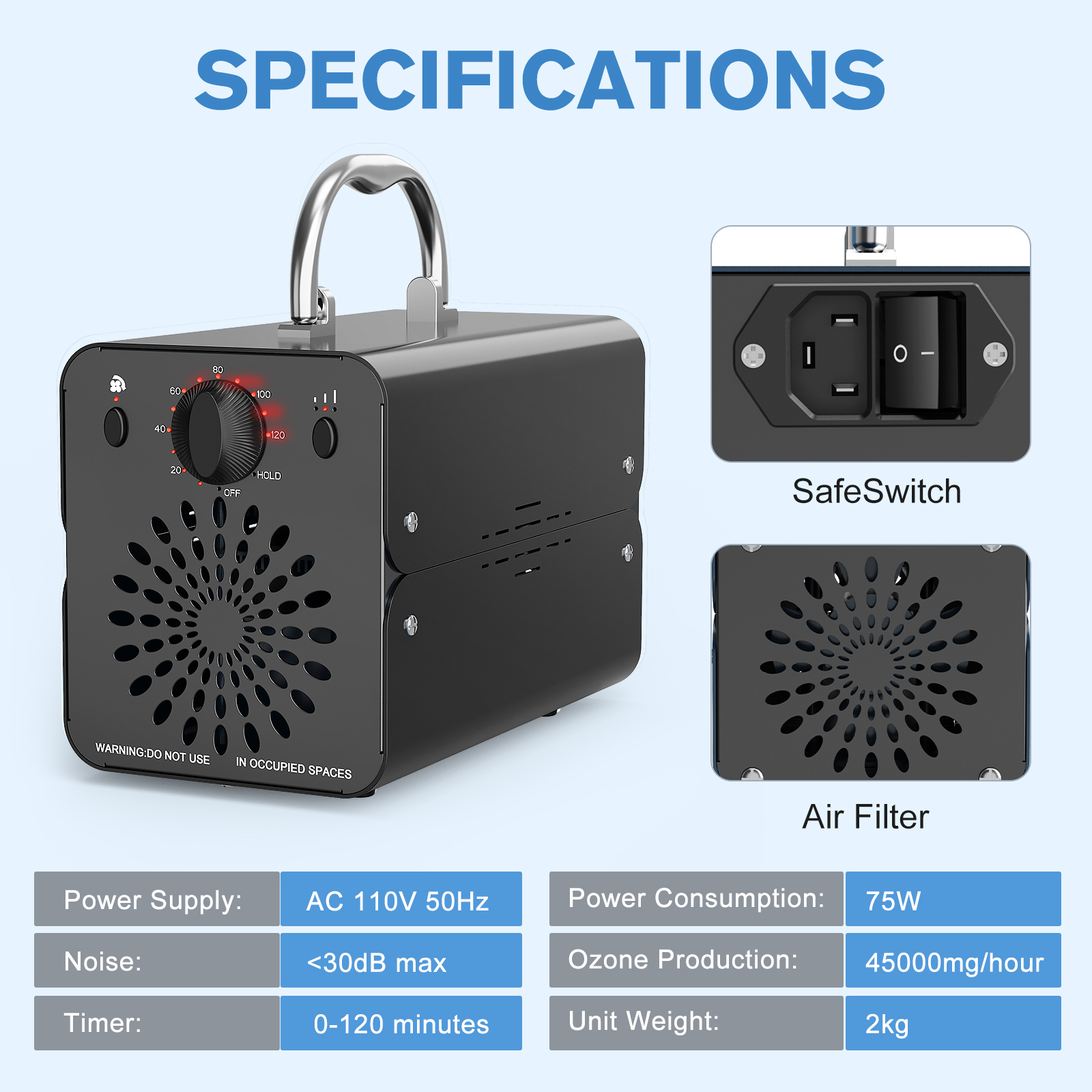 Ozone Generator 45000mg/h High Output, 5000+ Sq.Ft Air Purifier, Odor Remover for Home/Car/Office/Pet Room with Timer & Foldable Handle
