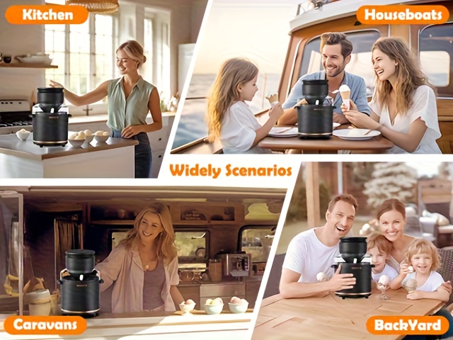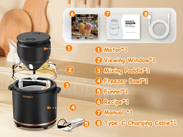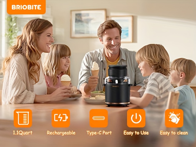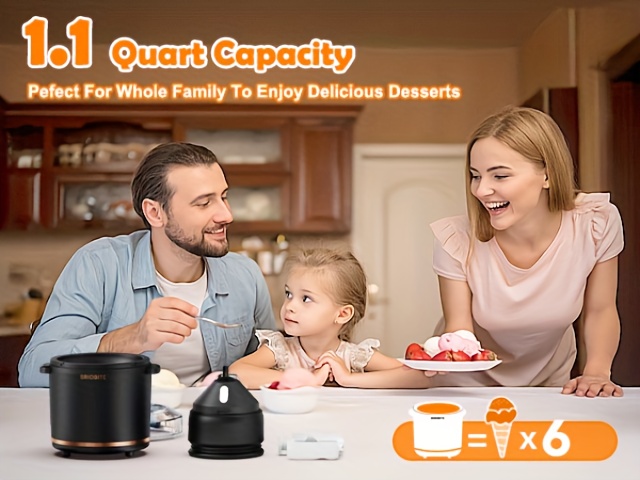 Rechargeable Electric Ice Cream Maker Machine - 1.1Qt (Lower Volume for Soft-Serve) with Double-Wall Insulated Bowl Suitable for Gelato, Milkshakes, Sorbet - Easy-Clean Base, Compact Ice Cream Maker for, Perfect for 3-4 Servings, Ideal Gift, black